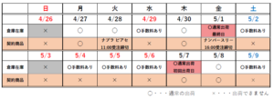 ゴールデンウィーク期間中の出荷・休業スケジュールについてご案内いたします。